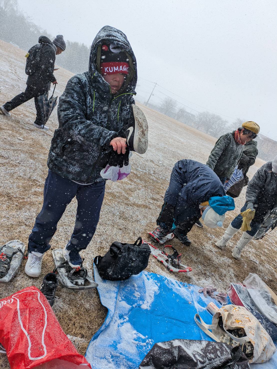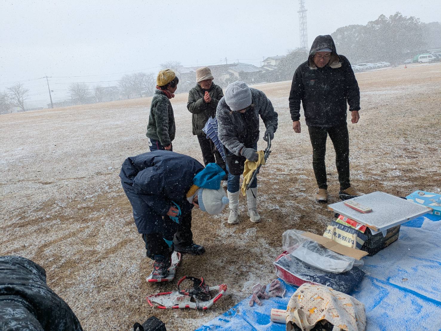 2026.植木ブランチスノーシューイング 2026.02.09 ueki 2/7スノーシューイングプログラム ~植木芝生広場~ 雪の中全員集合がんばりました。 あっという間に積もりました 4✕50mのリレーをしました ファミリーも1チーム作りました 顔に雪が当たると痛いほどです笑 後半には、猛吹雪になりました いつも通り片付けをして終了 最高のスノーシューイング日和でした