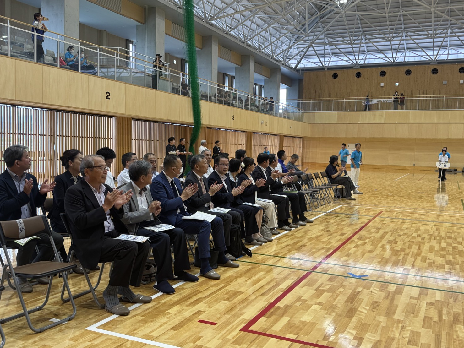 来賓を代表して吉井 誠西原村村長よりご挨拶いただきました。会場の西原村総合体育館は熊本地震の復興のシンボルの1つとして作られた、エアコンも入る新しい体育館で、快適な環境での開催となりました。会場を提供いただいた西原村には心より感謝申し上げます。