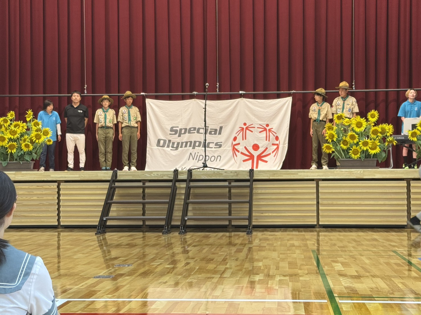 続いてアスリート代表と日本ボーイスカウト熊本第16団ボーイ隊の皆さんでSO旗を掲揚しました。大会期間中アスリートたちを見守ってくれます。