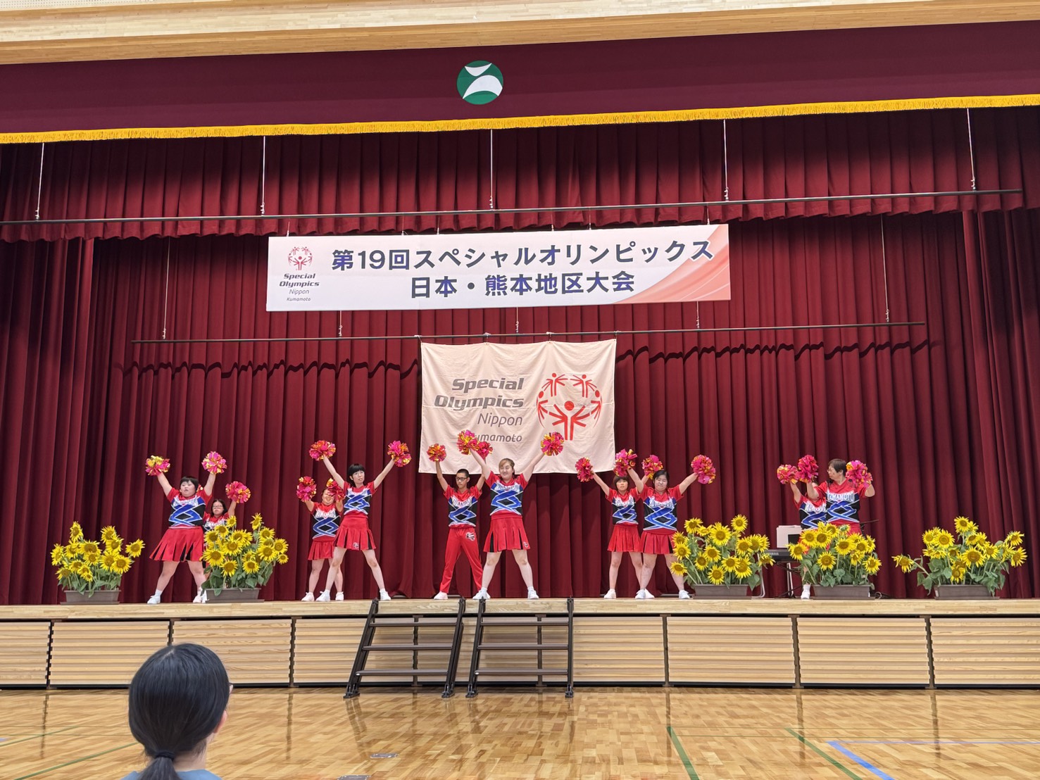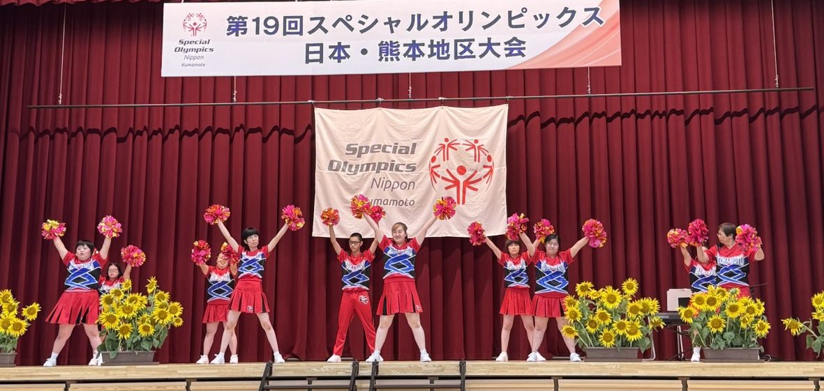 次はSON・熊本競技チアプログラムの皆さんによるパフォーマンス。TonightとYour Songの2曲を披露しました。これまでは城北高校とのコラボでしたが、今回はSOのみんなだけでの演技で緊張したそうですが、立派に楽しく踊れていました。