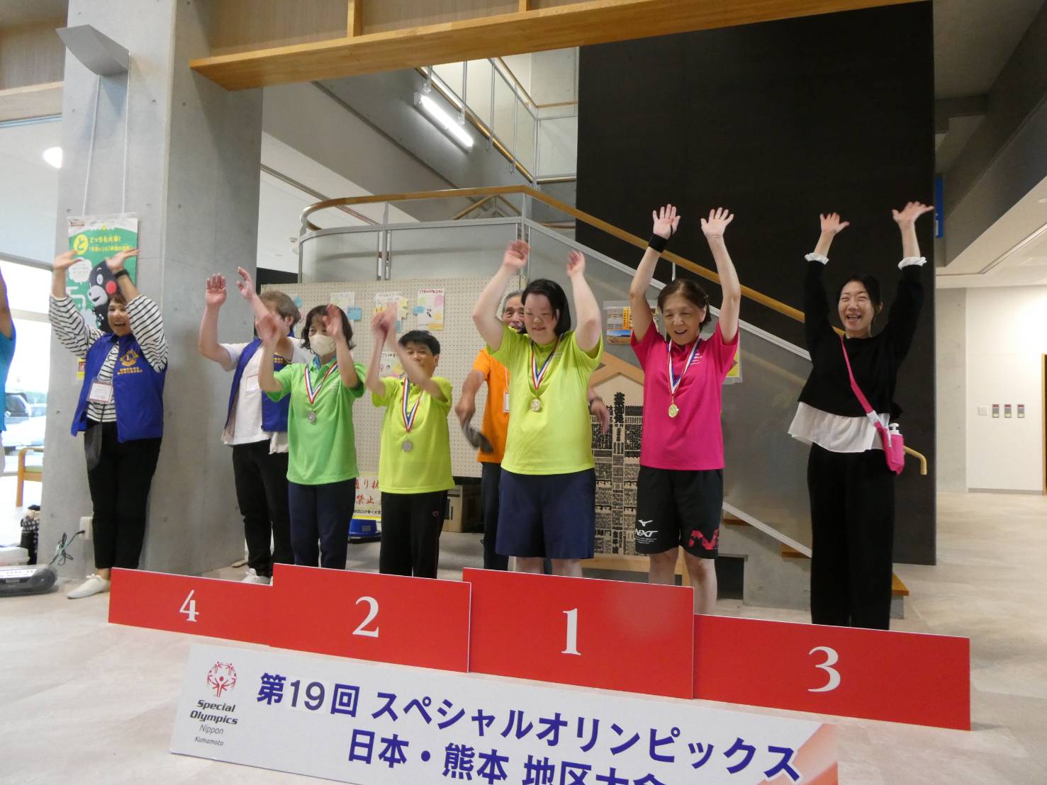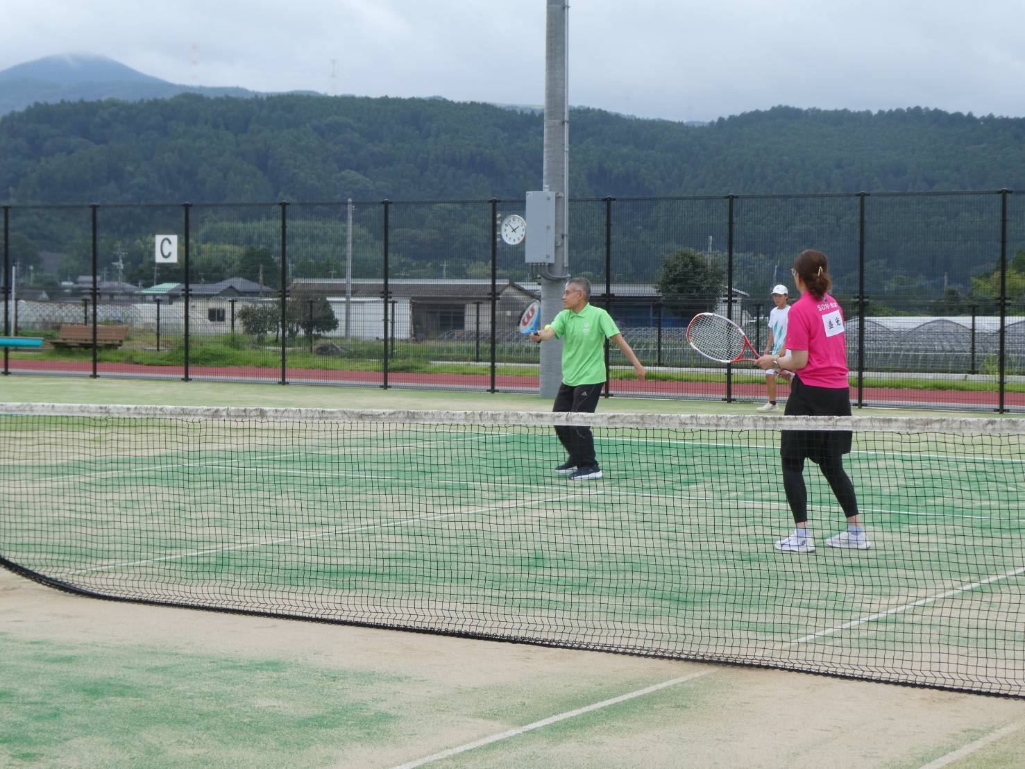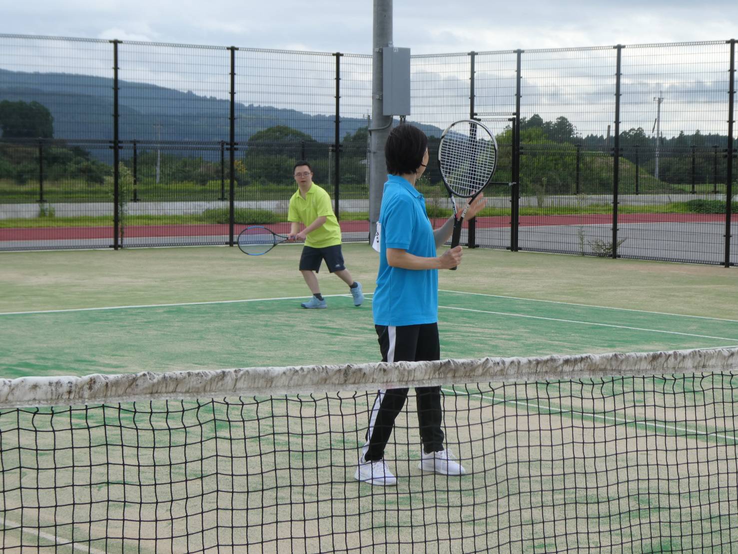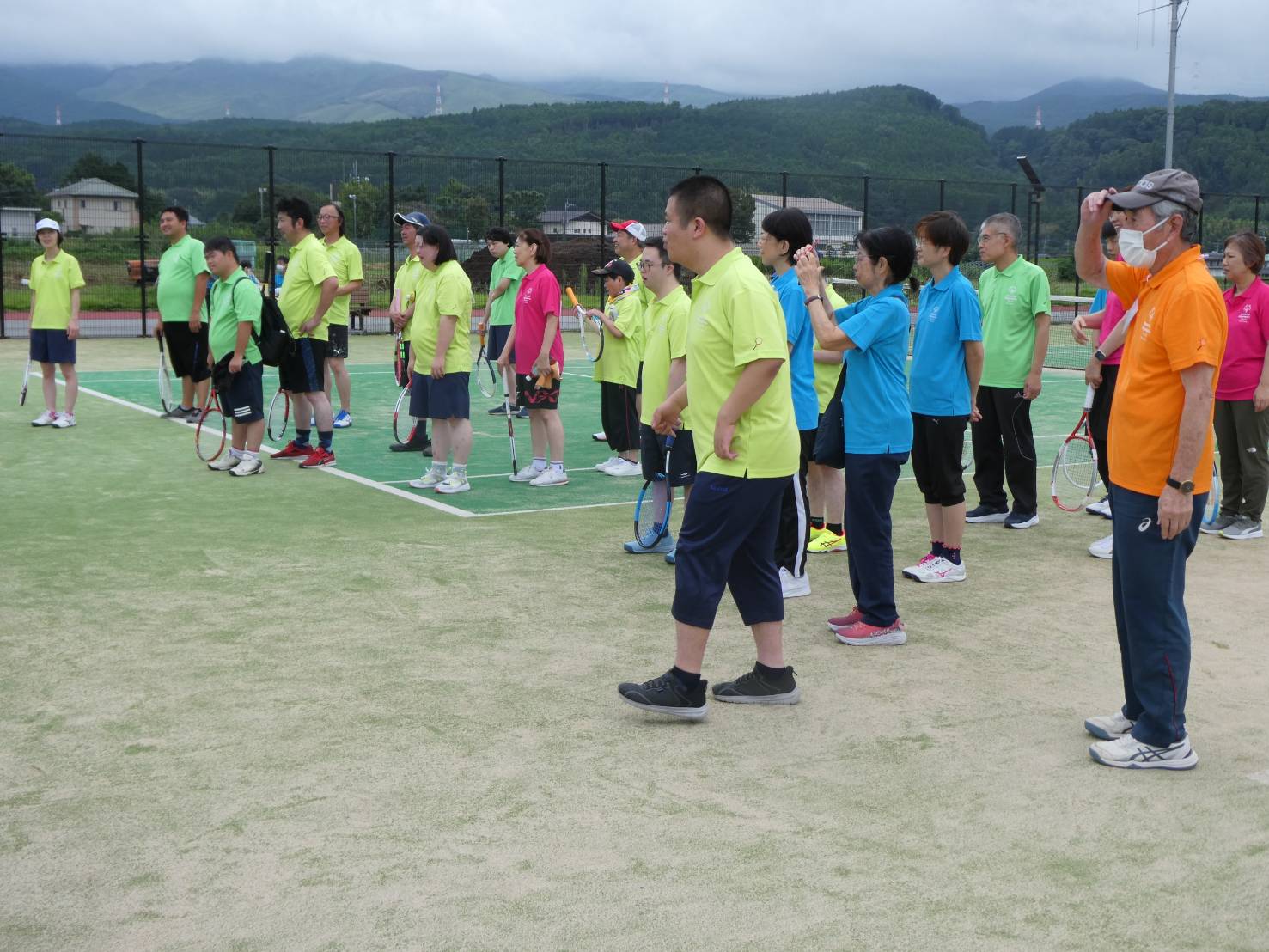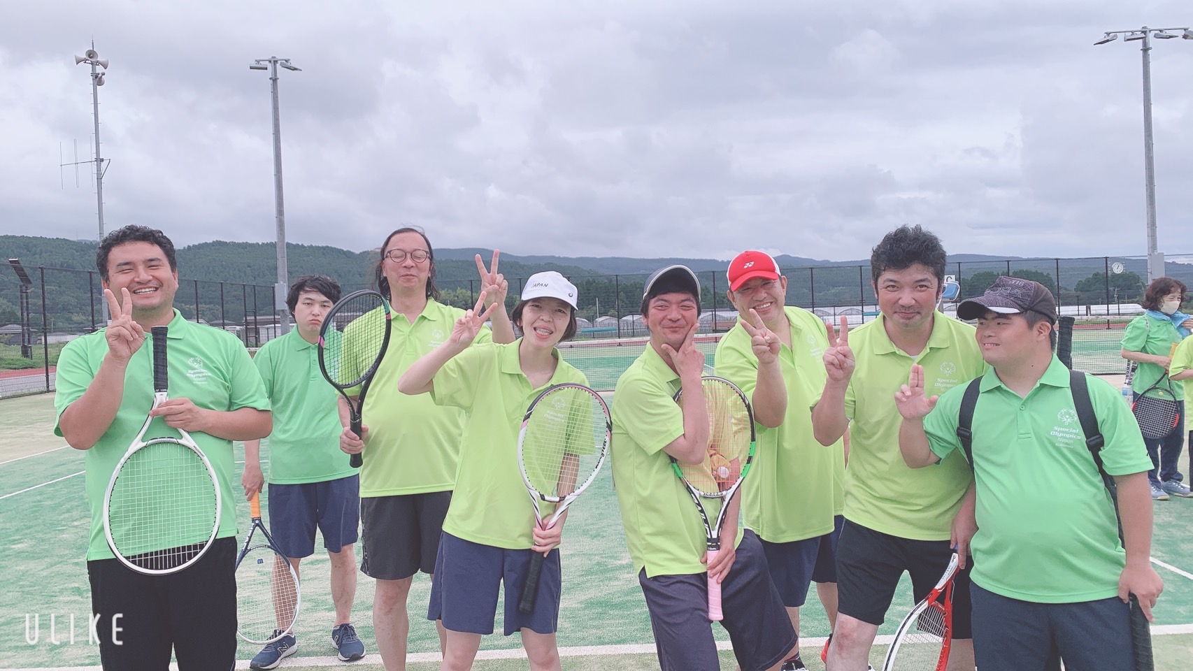 テニス競技会は開会式後に西原村総合運動公園テニスコートで開催されました。雨が心配されましたが、時折晴れ間も見られる中、個人技能競技、シングルス、ユニファイドダブルスの競技が行われました。