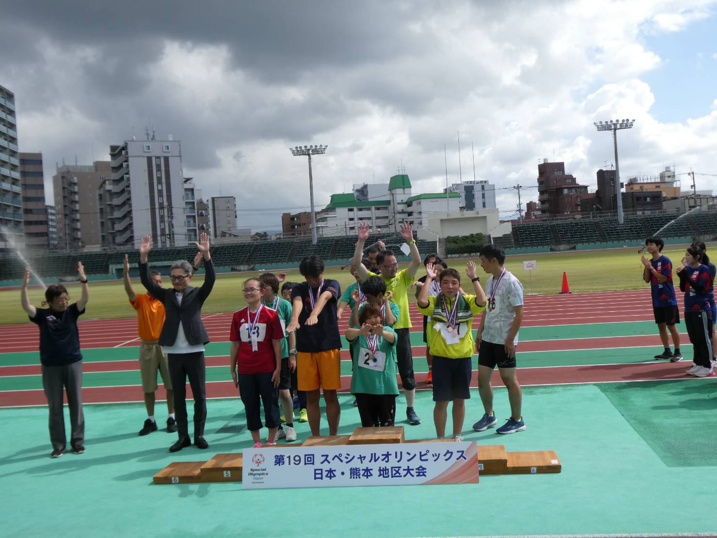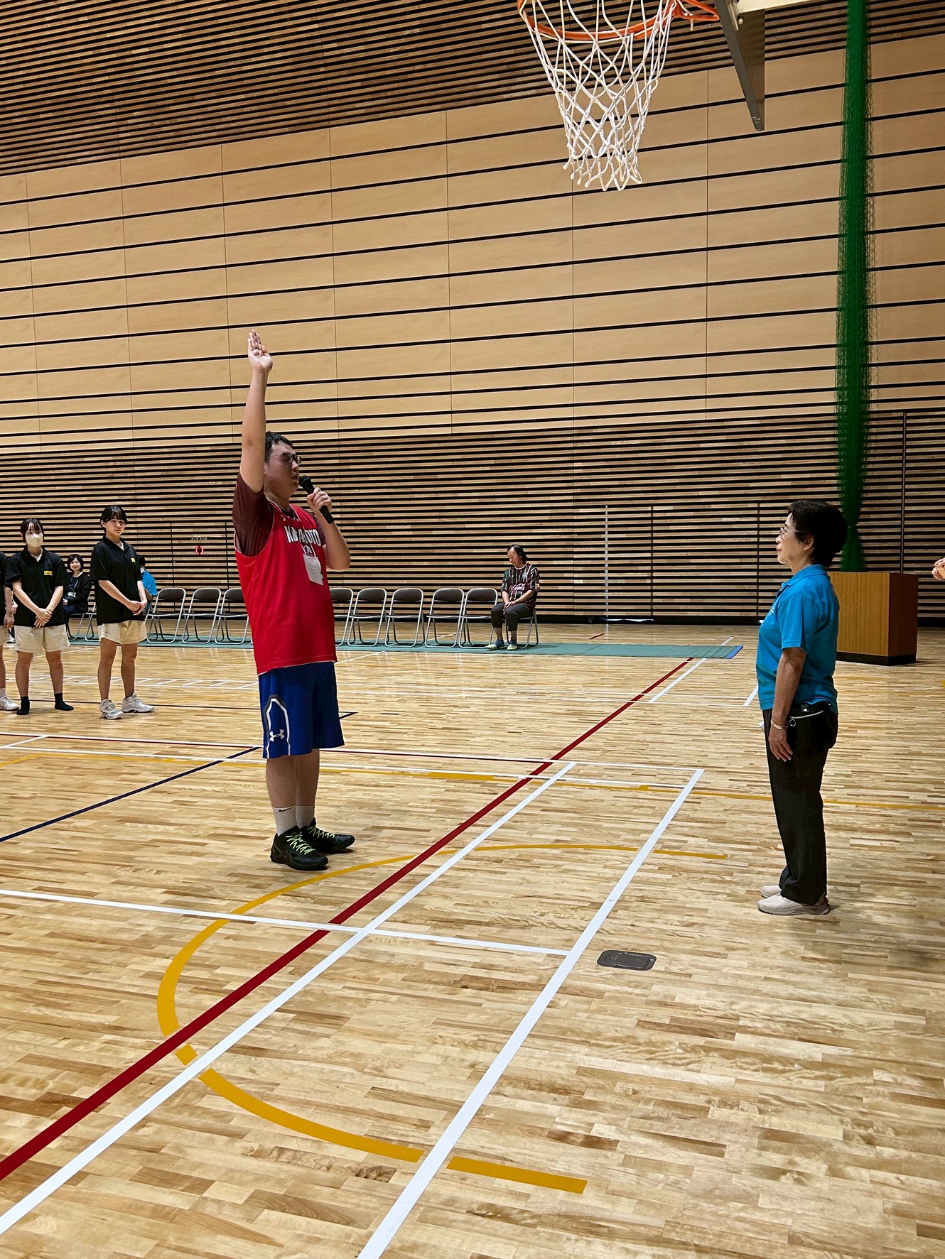 アスリート宣誓後は熊本を2チームに分けての競技、済々黌高校のバスケットボール部の皆さんが入ってのユニファイド競技、済々黌と三角小学校6年生チームとの対戦とバリエーションに富んだ競技に会場は大盛り上がりでした。