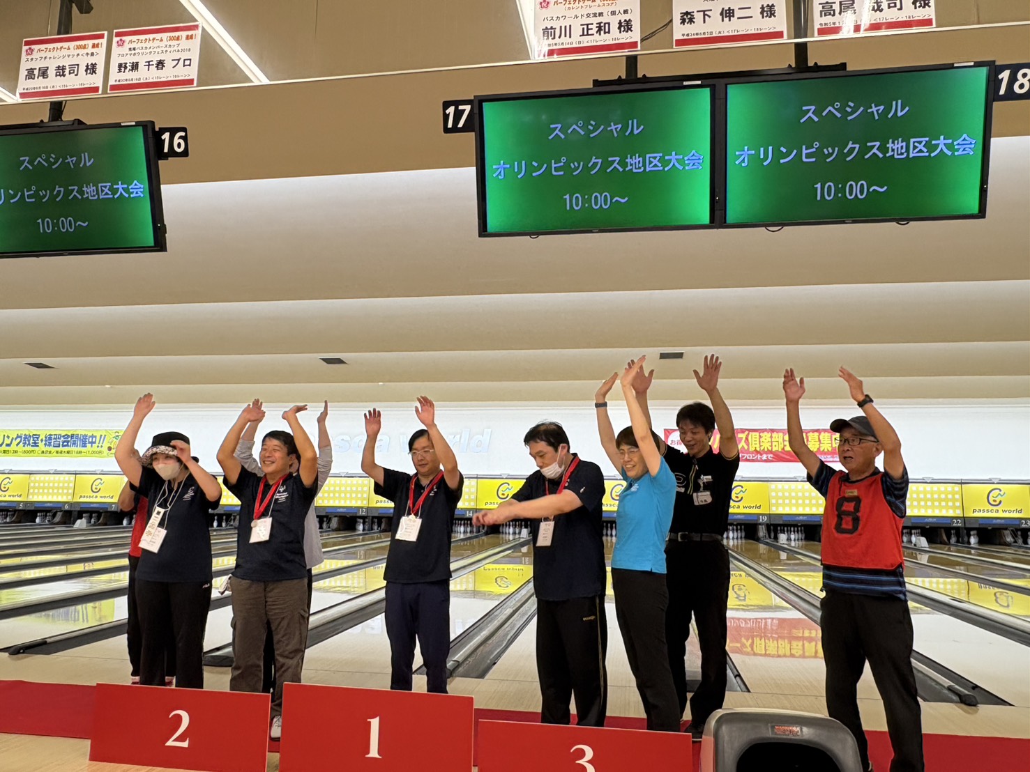 シングルスに加えて、今回初めてユニファイドダブルスを行い、男子3ペアと女子2ペアが参加しました。シングルスは3ゲームのトータル、ユニファイドダブルスはシングルス各2ゲームと、1フレームずつ交代で投げるベーカーダブルスで2ゲームの合計6ゲームのスコアで競い合いました。