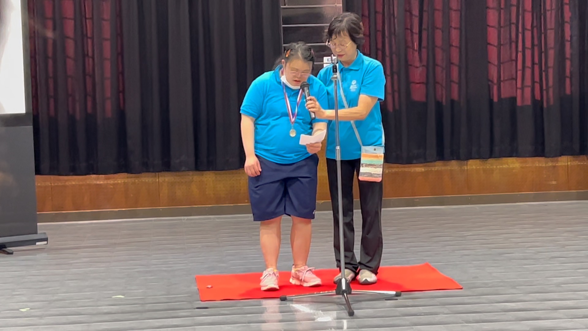 竹屋副実行委員長と卓球のアスリート青木菜美さんによる閉会宣言。